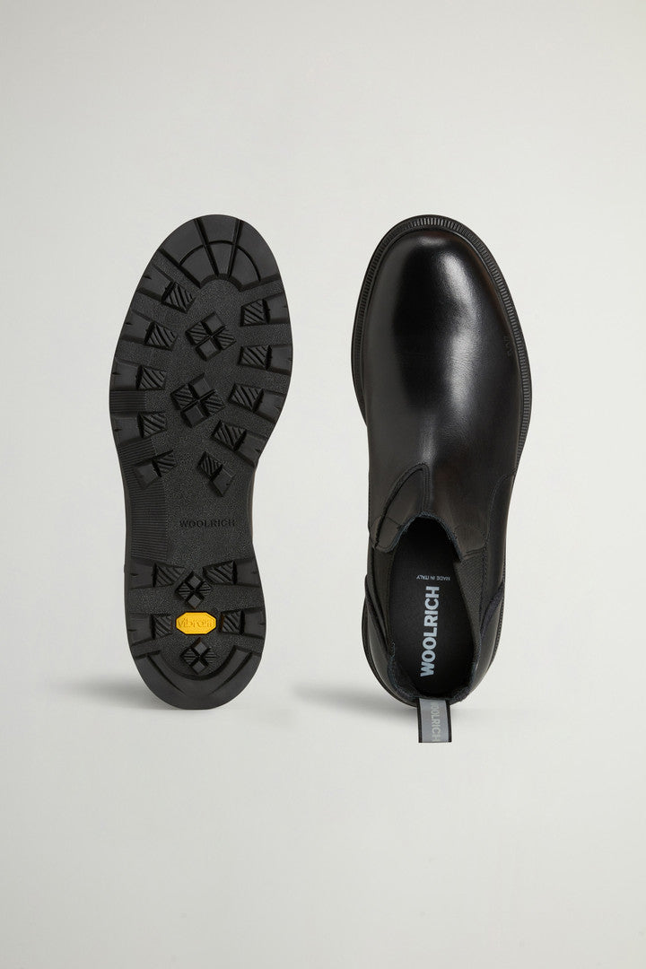 A timeless must-have to keep in your wardrobe season after season. Crafted in calfskin leather, these Made in Italy boots combine premium materials and refined detailing. The exclusive Woolrich Wool City sole is inspired by the historic "Carrarmato" developed by Vibram in 1937 to combine the grip of climbing shoes with the durability of mountaineering boots. The tread is enhanced with a Buffalo Check pattern, while the dual-density compound features a Megagrip rubber shell and a lightweight, shock-absorbing PU core for traction, resilience, and comfort on any terrain. Finished with a removable insole, logo heel loop, and heat-embossed "W" branding on the side.
